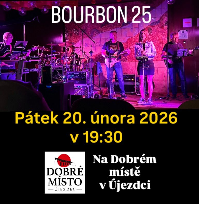 Zveme vás na náš koncert na Dobrém místě v Újezdci. I když naši muziku nikdo z výše uvedených nijak neovlivnil, nic nám nemůže zabránit, všechno to tam hezky oslavit - s BOURBONEM 25 Přepišme společně dějiny tohoto dne! Těšíme se na vás.![]()